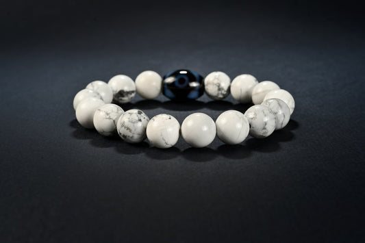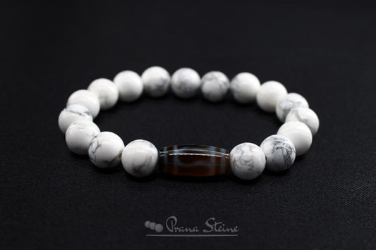 Dzi-Stein mit Howlith - Willenstärke, Geduld & Ausdauer