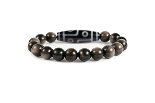 Dzi-Stein 6 Augen mit Obsidian - Lebensqualität, Gelassenheit, Geduld