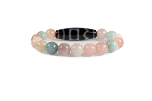 Dzi-Stein Harmonie mit Morganit - Konflikte, Sicherheit, Optimismus