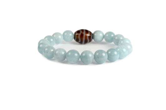 Dzi-Stein Welle mit Aquamarin - Selbstvetrauen, bringt Verstand und Gefühl in Balance