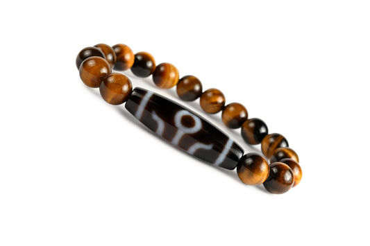 Dzi-Stein "Der Edelmann" mit Tigerauge - Bestimmtheit, Schutz, körperliche Vitalität