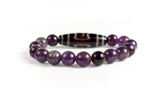 Dzi-Stein Garuda mit Amethyst - Schutz für Reisende, Willenskraft, mildert Angstzustände