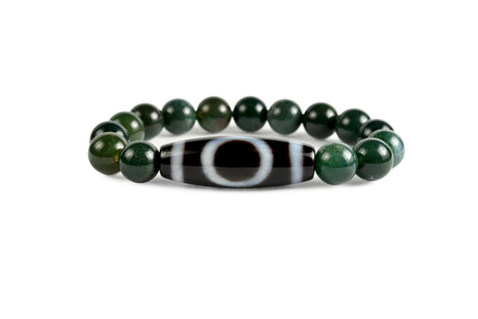 Dzi-Stein Himmel und Erde mit Moosachat - Optimismus, innere Sammlung, Ziele zu erreichen