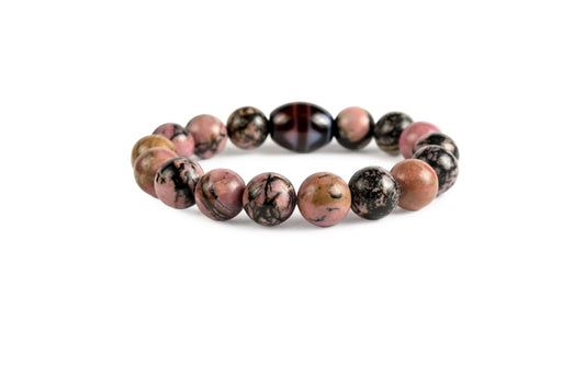 Dzi-Stein "Tigerzahn" mit Rhodonit - Selbstbewusst, kraftvolles Lebensgefühl, Konkurrenten