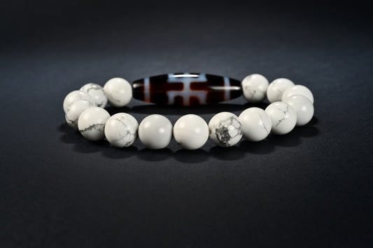 Dzi-Stein mit Edelmann mit Howlit - wichtigster Schutzpatron, geistigen Stabilität, Energie